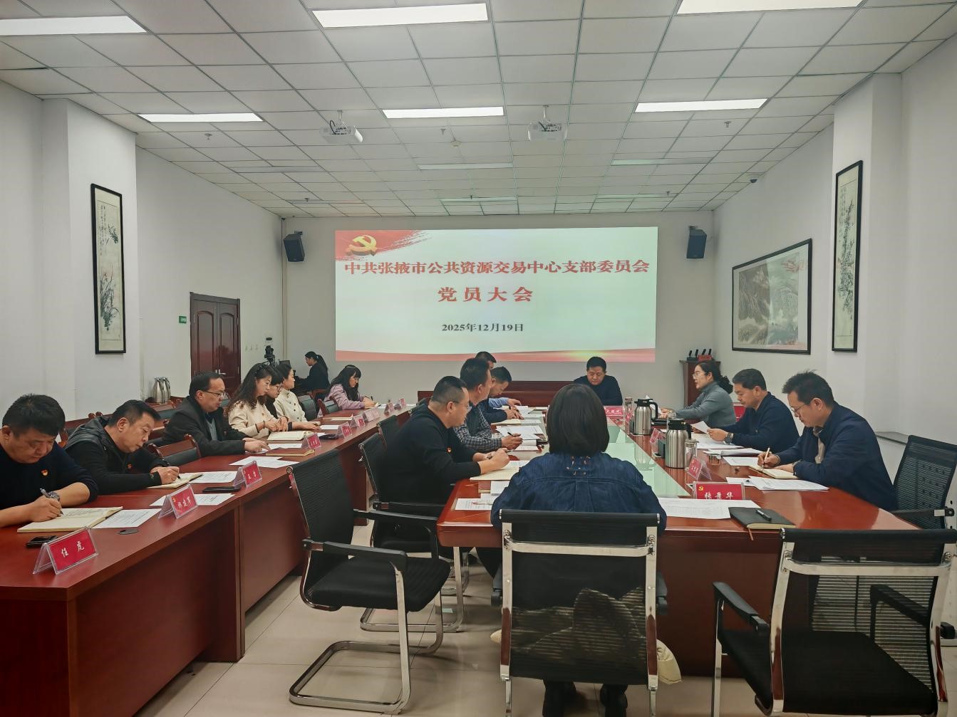 12月19日,张掖市公共资源交易中心党支部召开党员大会,选举产生新一届支部委员会委员、支部书记、副书记。中心全体党员参加换届选举大会。