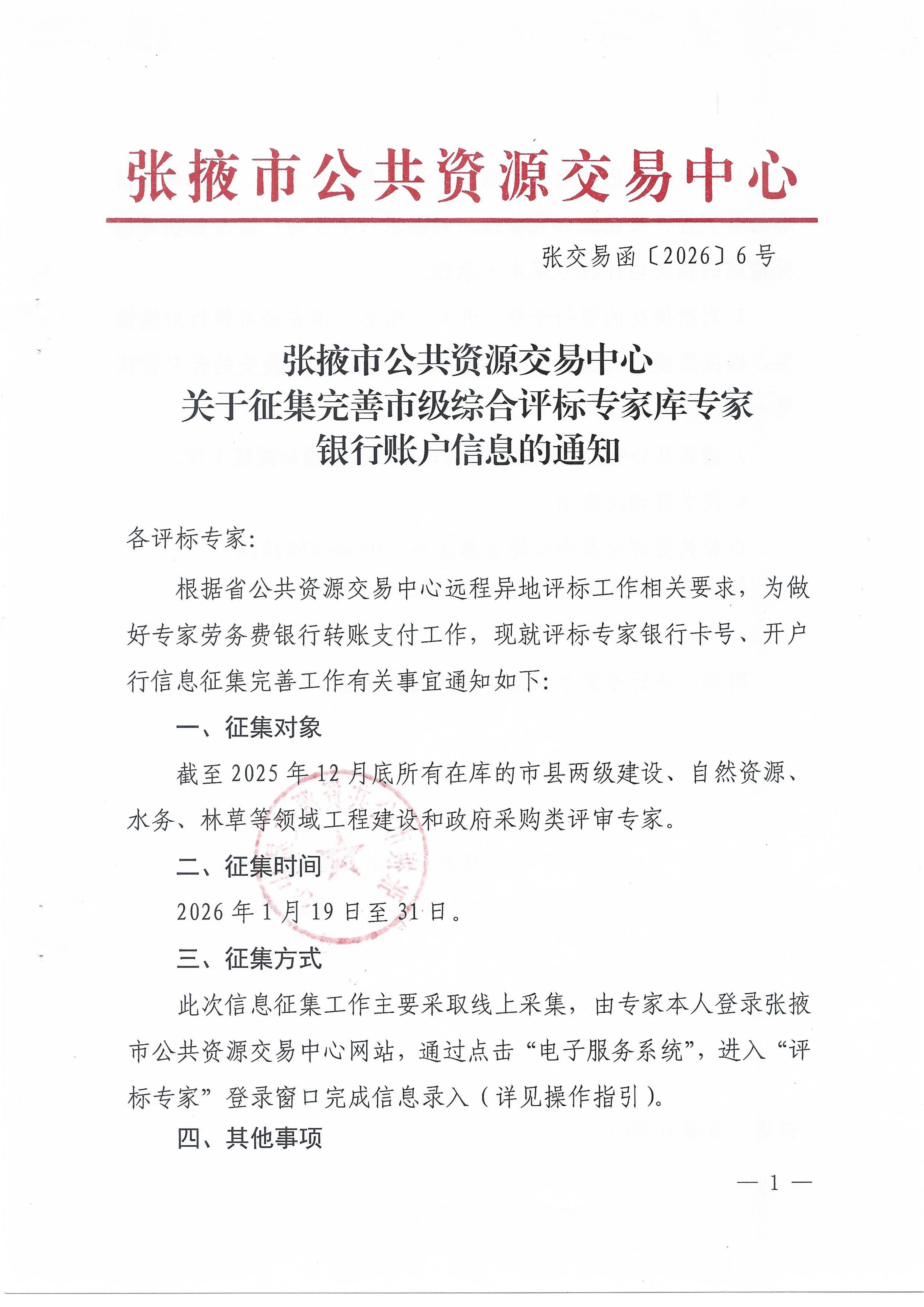关于征集完善市级综合评标专家库专家银行账户信息的通知