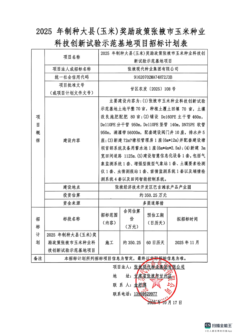 [市本级]2025 年制种大县(玉米)奖励政策张掖市玉米种业科技创新试验示范基地项目计划公告
