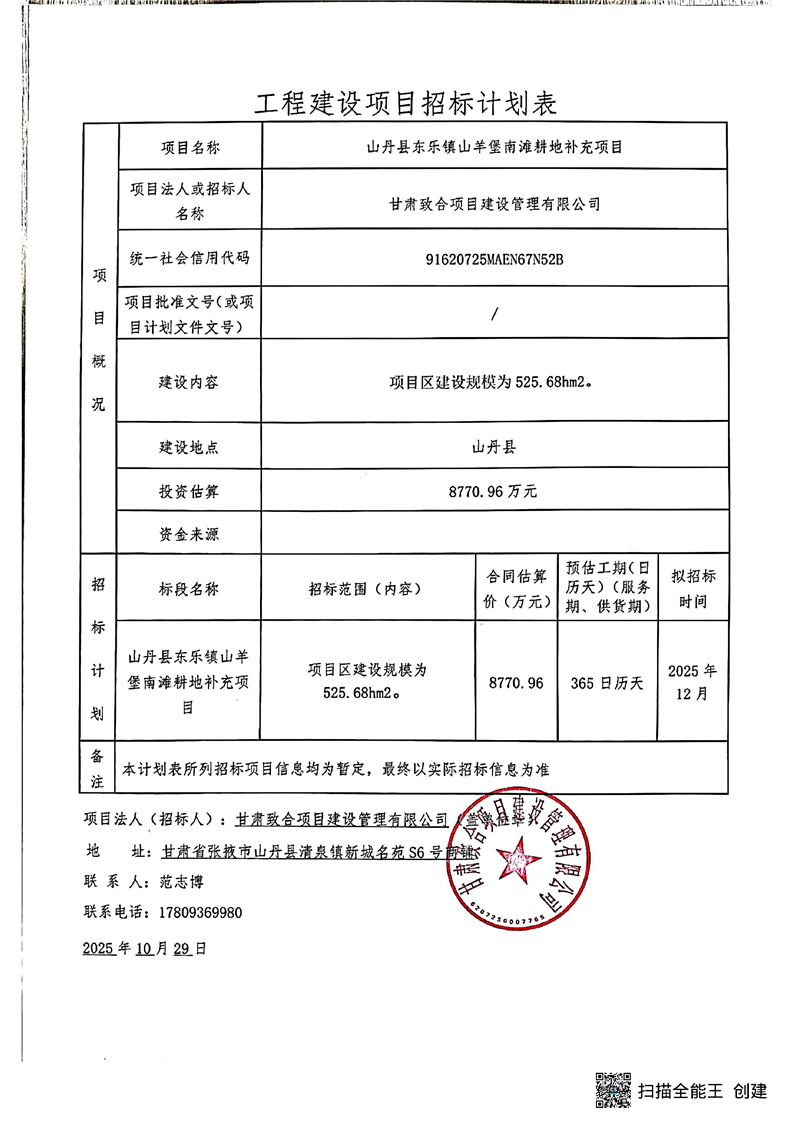 [山丹县]山丹县东乐镇山羊堡南滩耕地补充项目计划公告