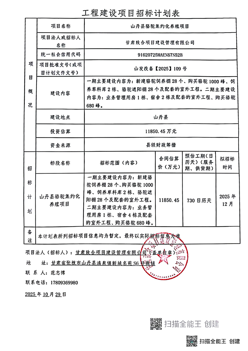 [山丹县]山丹县骆驼集约化养殖项目计划公告