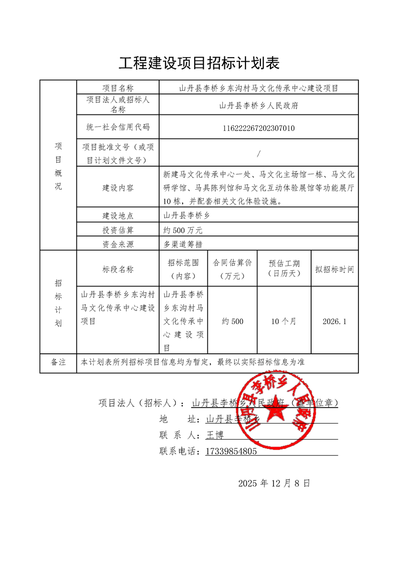 [山丹县]山丹县李桥乡东沟村马文化传承中心建设项目计划公告