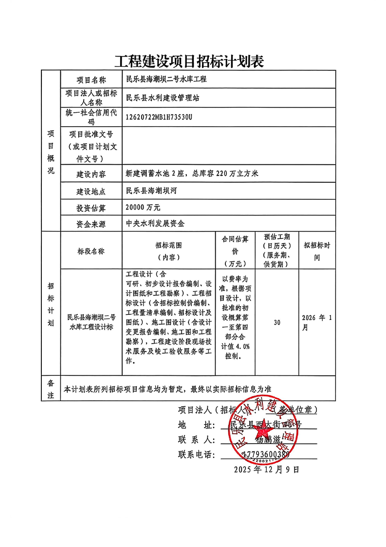 [民乐县]民乐县海潮坝二号水库工程计划公告