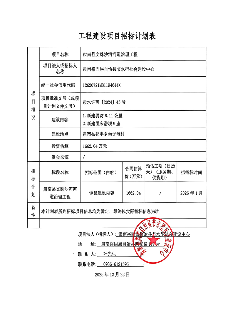 [肃南县]肃南县文殊沙河河道治理工程计划公告