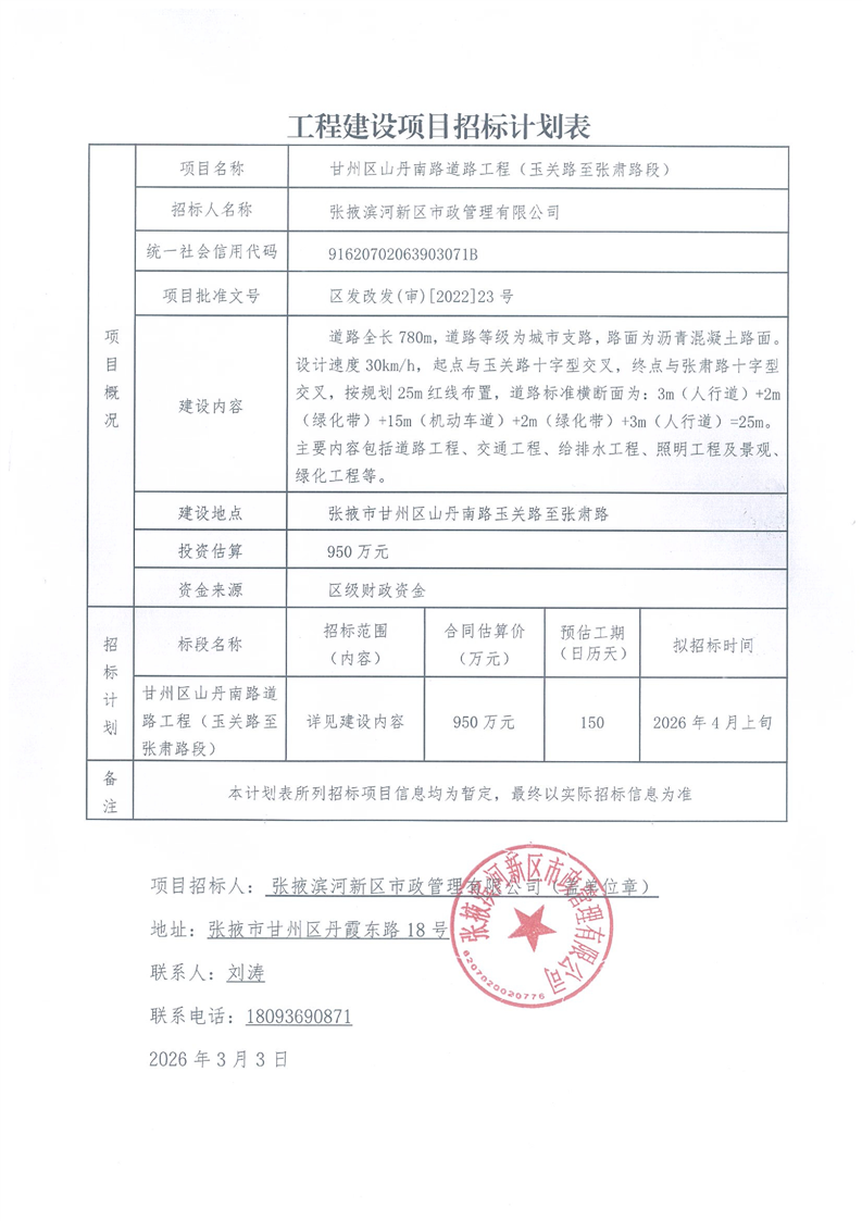 [市本级]甘州区山丹南路道路工程(玉关路至张肃路段)计划公告