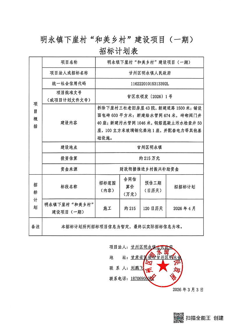 [市本级]明永镇下崖村“和美乡村”建设项目(一期)计划公告