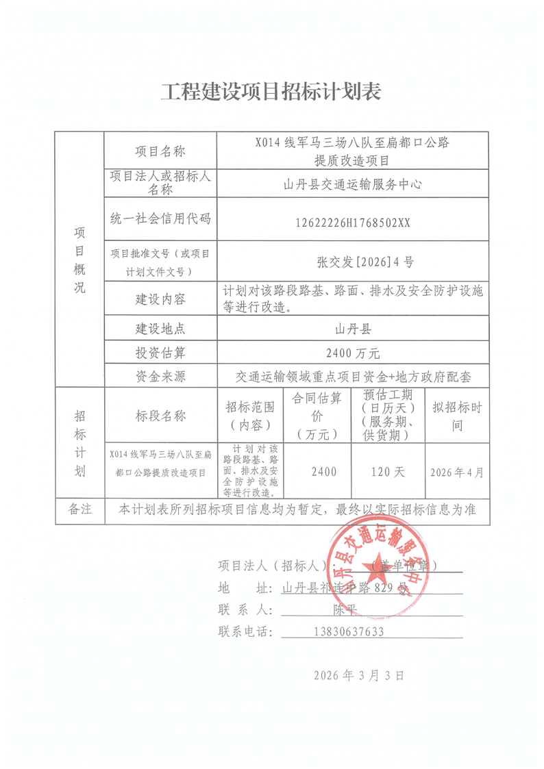 [山丹县]X014线军马三场八队至扁都口公路提质改造项目计划公告