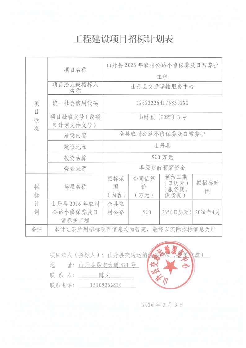 [山丹县]山丹县2026年农村公路小修保养及日常养护工程计划公告
